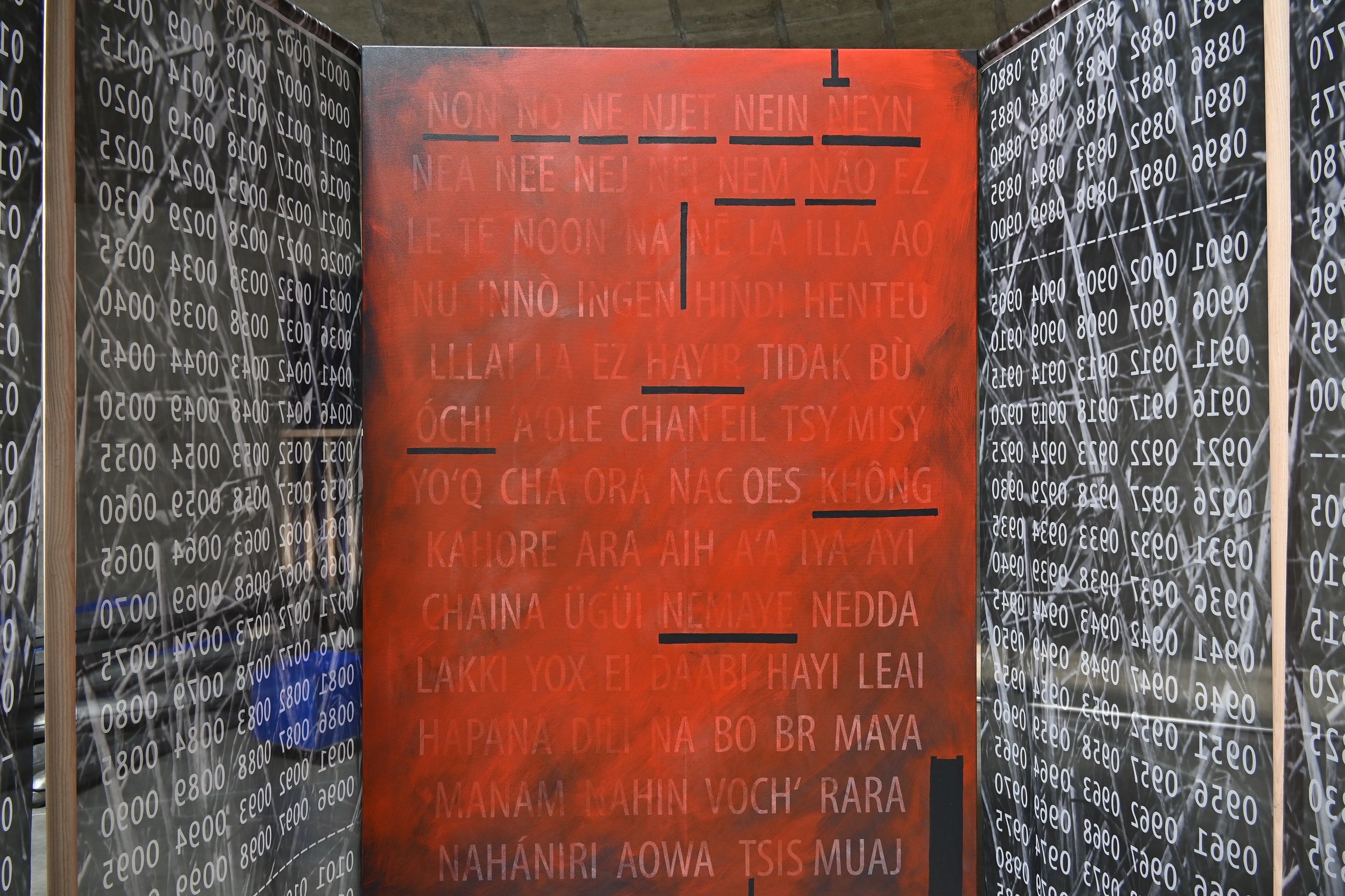 neuen Rauminstallation ADD.LIN.FRE.17: NEIN-NON-NE (1991/2022–24) von Meina Schellander